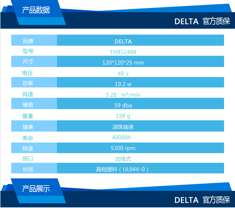 DELTA臺達/THB1248B/12025/48V/0.75A/PWM散熱風扇,4線PWM調速風機,全新原裝,風量大,風噪低