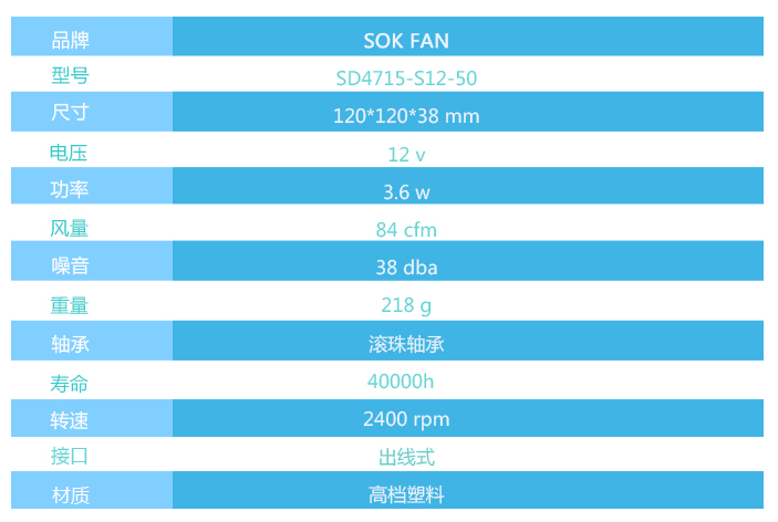 SD4715-S12-50 12V 0.3A 12cm 2線散熱風(fēng)扇