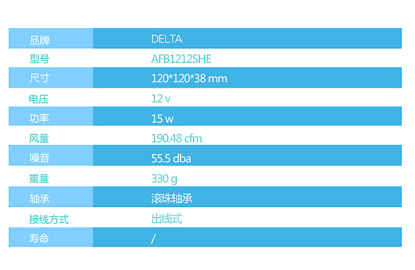 全新臺達AFB1212SHE 12V 1.6A 12cm 4線pwm風機,大電流,高轉速,大風量
