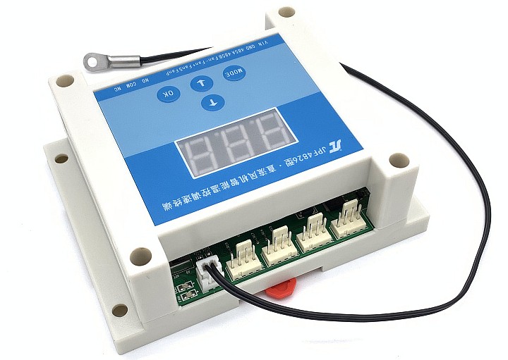 帶溫度顯示面框,調速器通過檢測到的溫度來控制風機轉速,溫度越高,轉速越快,當溫度低于啟動溫度時,風機關停或維持最小轉速,高于啟動度時,風機低速啟動,如果溫度持續升